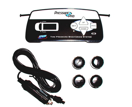 Pressure Pro 6 Wheel System for Auto / Lt. Truck / SUV / Bus (W / No Tow) 6 Wheel Tire Pressure Monitoring System for Auto/ Lt Truck/ SUV/ Bus. Easy to install, Requires no tools. Comes complete with 6 Sensors, Monitor, Dipole Antenna, and Power Cord. |
